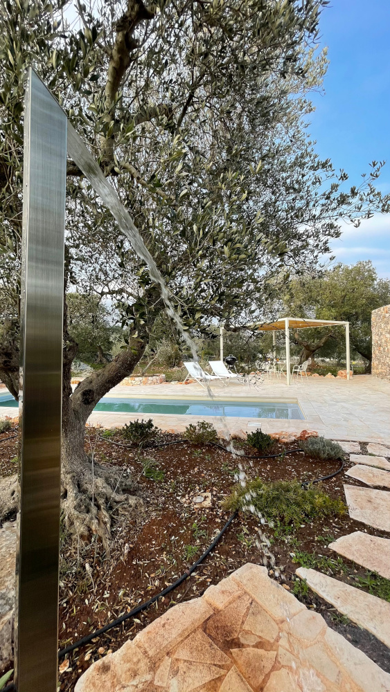 The private salt water pool is 10x2.5m provided with outdoor shower, sun beds and pool towels.