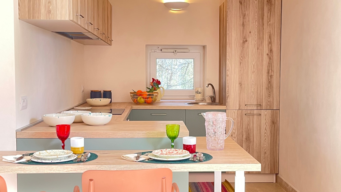 Fully equipped for 6 kitchen with 4 induction hobs, microwave, electric oven, Nespresso, kettle, fridge, freezer, dishwasher.